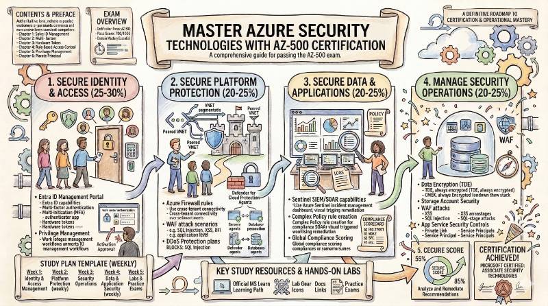 You learn how to secure identities with Azure Active Directory, design secure networks, protect workloads, configure encryption, manage keys, and run security operations using tools like Microsoft Defender for Cloud and Microsoft Sentinel. This is not a beginner-level exam; it expects you to already know core Azure services and basic security concepts.